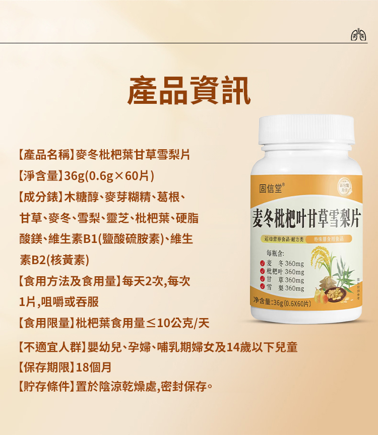 【5天化痰潤肺】麥冬枇杷葉甘草雪梨片