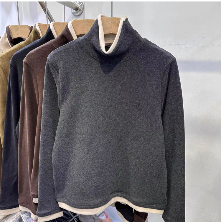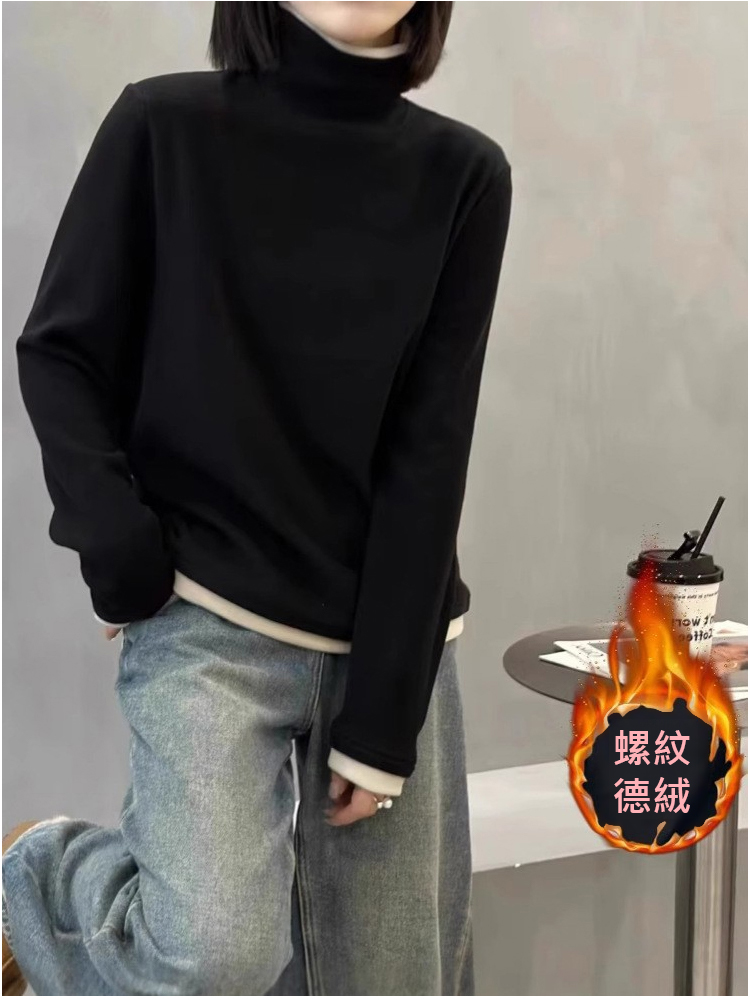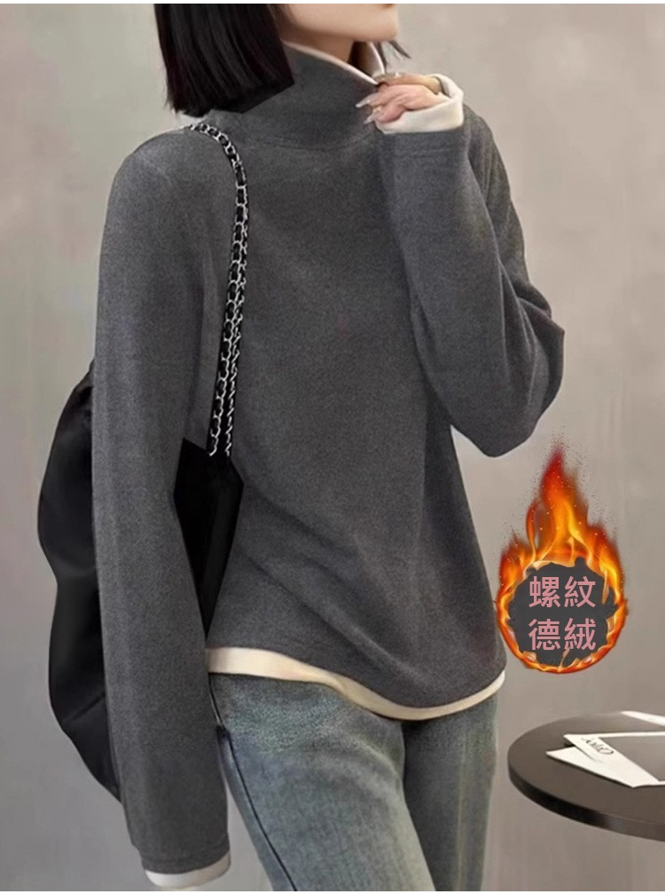 拼色假兩件德絨女士打底衫