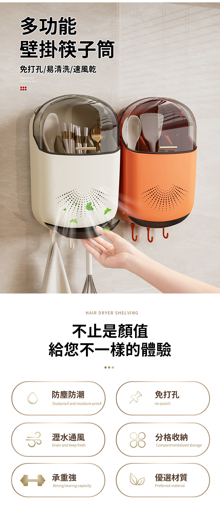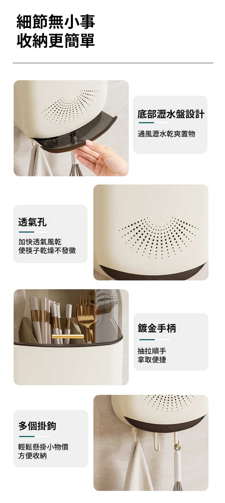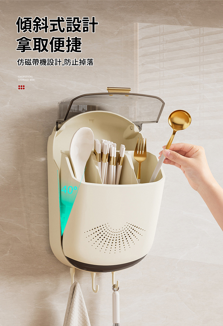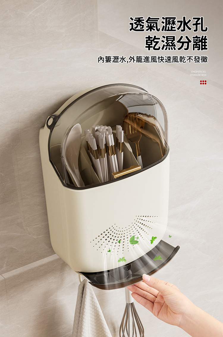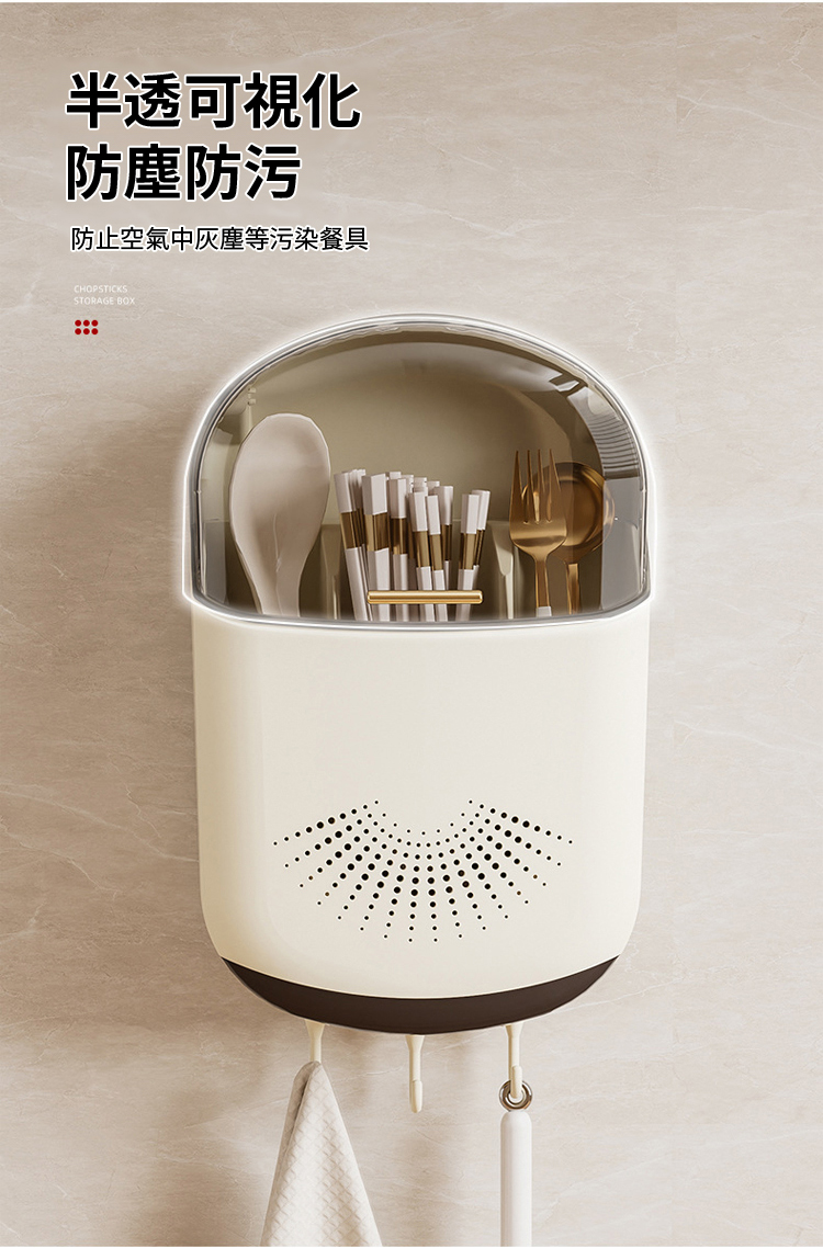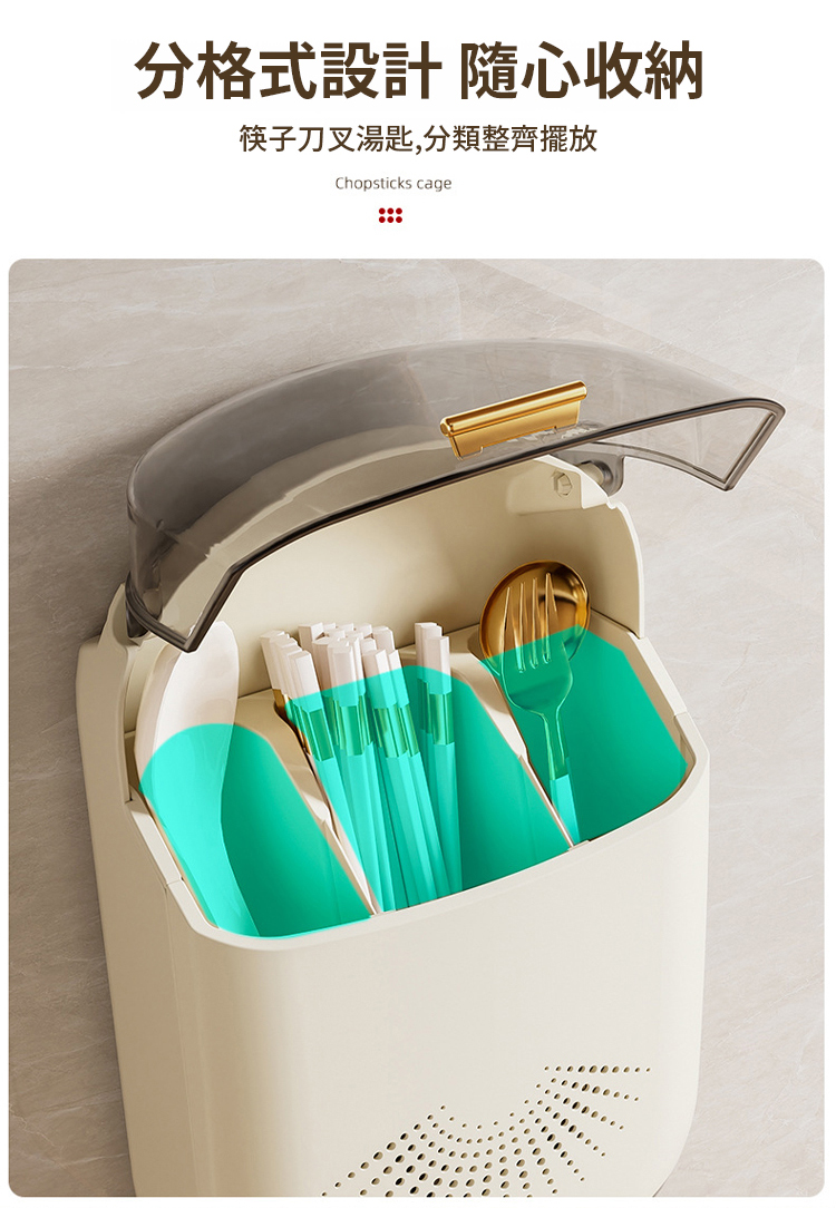 日式防塵瀝免打孔餐具壁掛收納盒